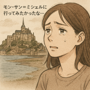 と考えているうちに、考えすぎて自分が死ぬことを想像しました。死ぬ瞬間を思い描いてみたら、頭の中にモンサンミッシェルが出てきて「あ・・・あそこ行ってみたかったな・・・」と思っている自分が想像できました。